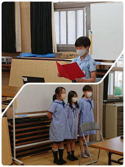 今週の朝会では、2,4,6年生の代表が各学級で取り組んでいる