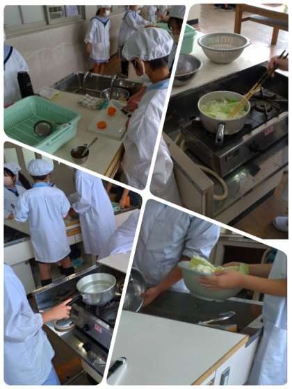 初めての調理実習でしたが、説明をしっかりと聞いてグループのみんなで協力することができていました。