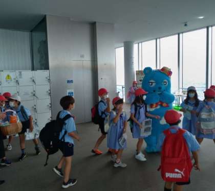 見学中、あべのベアにも出会うことができ、子ども達は大喜び♪