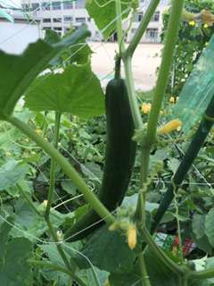 朝から30度を超える暑い日が続いています。学習園のナスやキュウリがグングン育っています。花から野菜に変化していく様子を理科や生活科で観察しています。