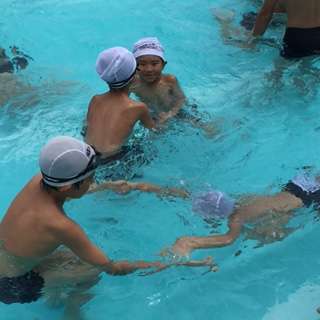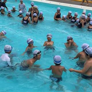 今日は1年生と6年生がいっしょにプールに入っています。ゲームやリレーを楽しみながらピアサポートの大切さについて学び合っています。