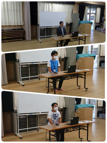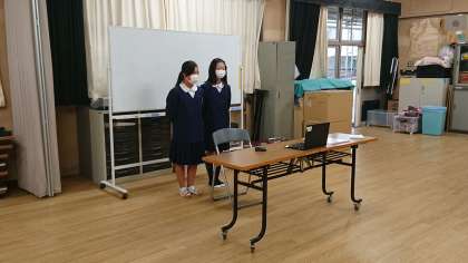 今週の朝会から運動場で実施する予定でしたが、あいにくの天候