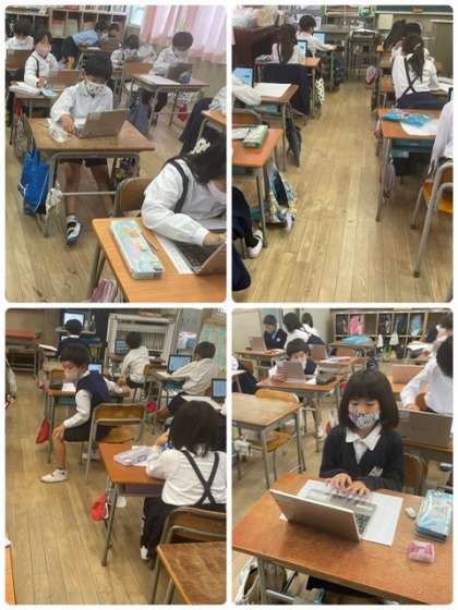 「ビーバーの大工事」で、ビーバーのひみつを見つけました。この学習を生かして、自分が知りたい動物のひみつを見つけていきます。タブレットを使ってひみつを調べました。どんなひみつが見つかるか楽しみですね。