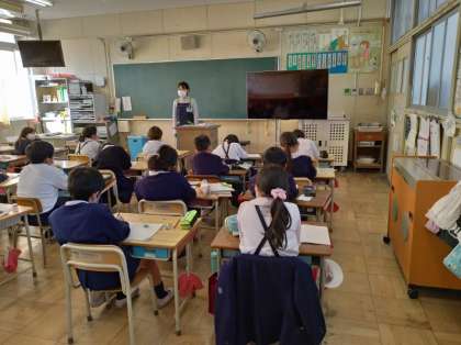 感染症の影響で、スーパーマーケットに見学に行くことができないので、ライフの方に来ていただいて、出前授業を受けました。
