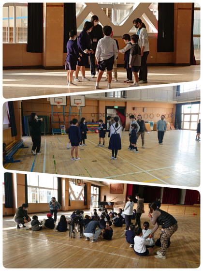講堂で楽しく全学年のメンバーでの交流を深めています。