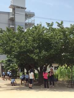 いきいき活動に来ている子どもたちが、大きなセミを見つけました。