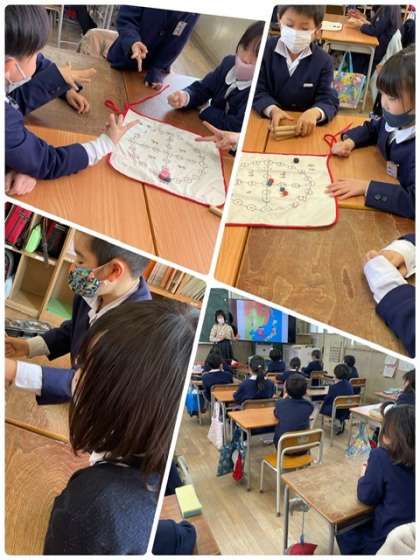 ソンセンニム(先生)が教室に来てくださり、日本とお隣の国である韓国と朝鮮について教えてもらいました。あいさつや食べ物、衣装、遊びについて教えてもらいました。ユンノリ(すごろく)を教えてもらい、みんなで楽しく遊ぶことができました。違う民族の人との仲良くするための方法も教えてもらいました。