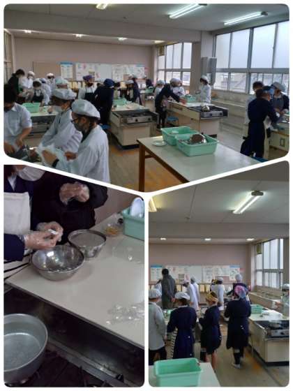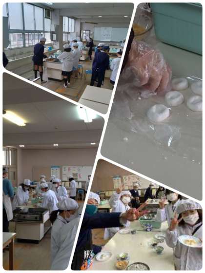 白玉粉に水を少しずつ加え、耳たぶぐらいの固さになるように、グループで協力しながらこねることができていました。