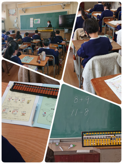 2時間目は、3年4組で「そろばん」の授業を行っていました。