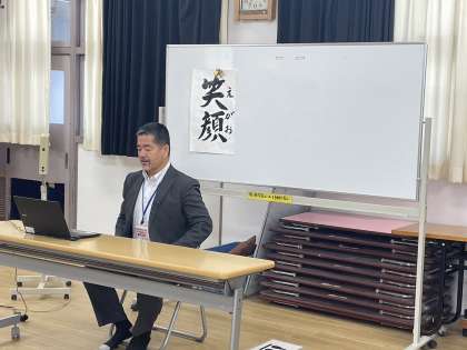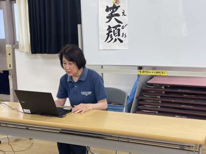 今週の朝会は、朝に降った雨の影響で、オンラインでの朝会と
