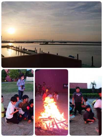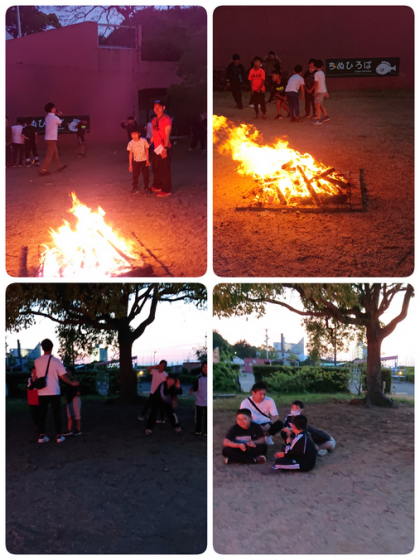 夕暮れの中、キャンプファイアが始まり、盛り上がって終了しました。。
