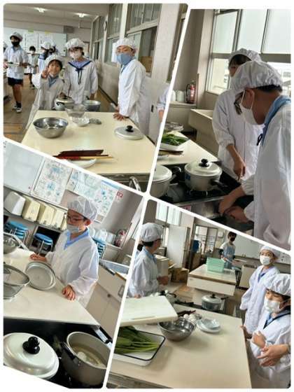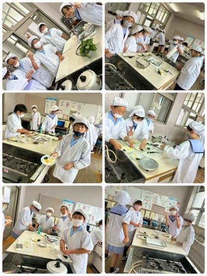 1組と3組が調理実習をしました。ほうれん草のおひたしとゆで卵を作りました。初めての調理実習でしたが、班で協力して準備したり、調理したり、片付けたりしていました。明日は2組が調理実習する予定です。
