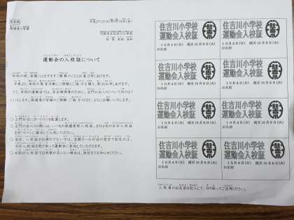 過日配布いたしました入校証に記名の上、受付・ガードマンに提示してください。