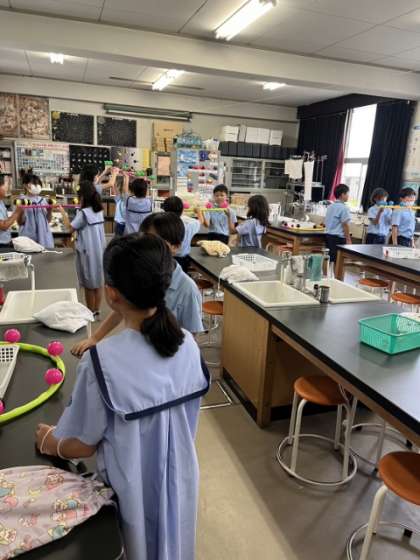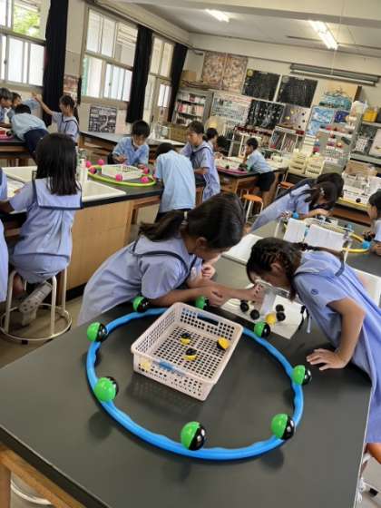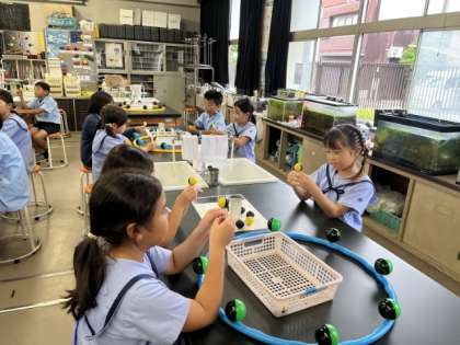 4年生が「月や星の動き」の単元で、「月の満ち欠けの仕組み」に関する体験学習を行いました。