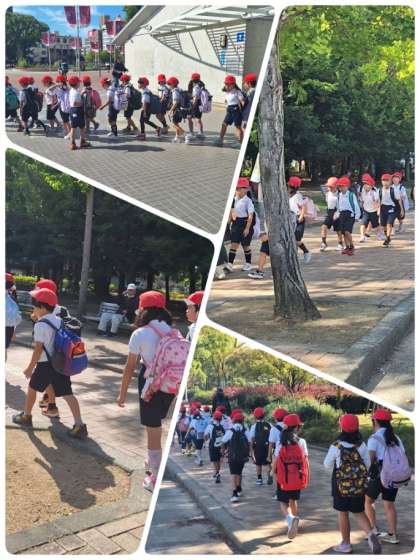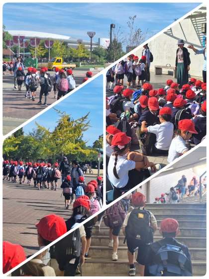 1年生の遠足で長居公園にきています。地下鉄を乗り継ぎ到着です。