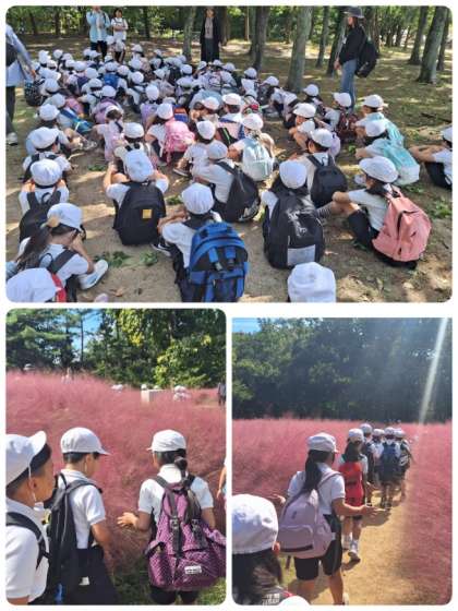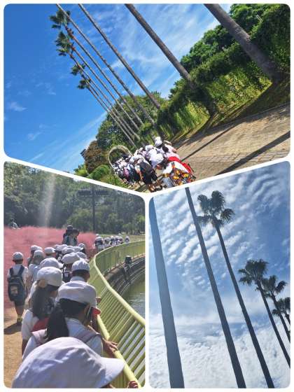 自然史博物館から出てクラス写真を撮りました。その後、長居公園内の草花を見学しながら散策です。