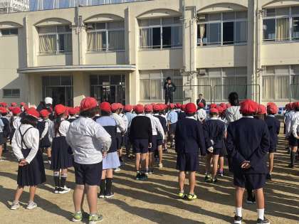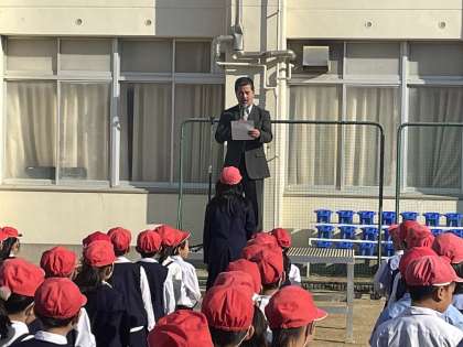 今日の朝会では、先日の中国語弁論大会に参加した5年生への