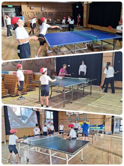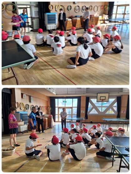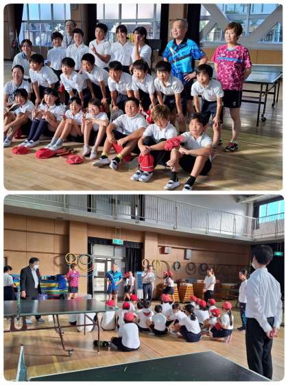 卓球協会から、2名の指導者に来校いただき、子どもたちに熱