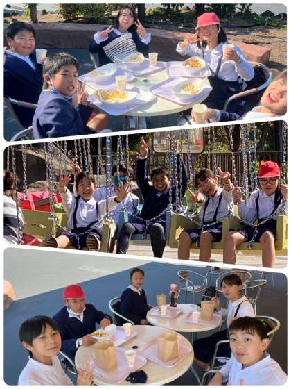 そろそろお昼ごはんを自分たちで選んで食べているグループもあります。