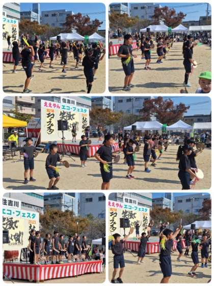 地域の行事で4年生のエイサー、5年生の南中ソーラン、和太鼓クラブのメンバーで参加をしました。