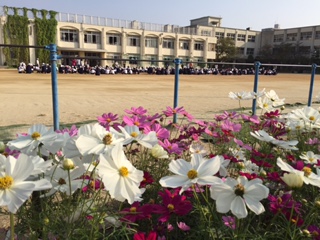 プール横の花壇のコスモスがグングン育っています。今朝は児童集会(ニコニコ集会)がありました。高学年がリーダーシップを発揮して進行しています。明日はいよいよ6年生の修学旅行です。