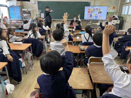 グリコの方からSDGs(エスディージーズ)についての授業をしてもらいました。