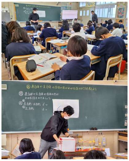 ・2月20日(火)2時間目に4年2組で「いろいろな箱の形を