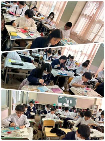 ぼかしやにじみ、スパッタリングなど、今まで学習した絵の具の技法を使って、色を塗りました。色合いを考えながら、彩色することができました。次は、彩色したものを使って名前を作ります。どんな名前アートができるか楽しみです。