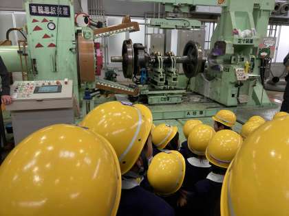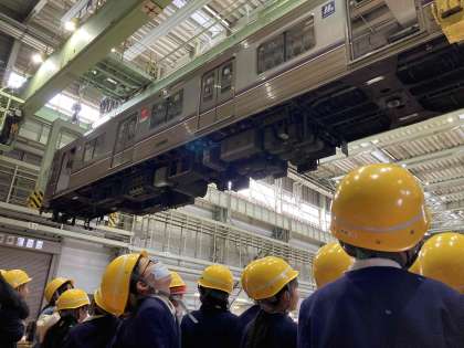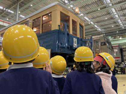 と子どもたちの素直な驚きの声が聞こえてきました。20トンの重さがある車両をクレーンで運び、一つ一つ丁寧に分解し修理・点検をしていました。普段乗っている車両を間近に見ることができて工場内でのお仕事に興味関心が高まった様子でした。地下鉄に乗るときにも今日のことを思い出してよく観察してみると、また新しい発見があるかもしれませんね。