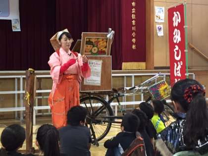 区人権啓発推進協議会・区役所主催の「住吉川ふれあい人権学習会」がありました。オープニングでは生涯学習ルーム「和太鼓・絆」と本校児童「芸能クラブ」の力強い演奏がありました。その後、「紙芝居」や「大道芸」の実演がありました。子どもも大人もいっしょになれる楽しいイベントでした。