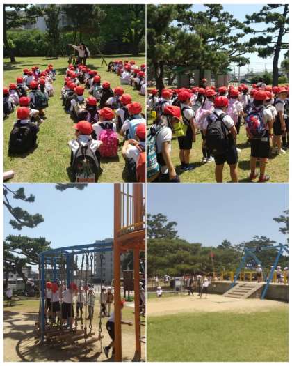 水分補給をして注意事項を先生から聞いて、遊び時間の