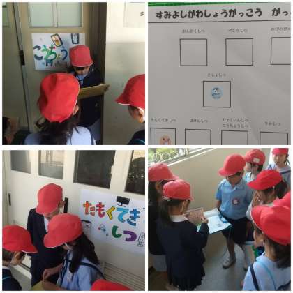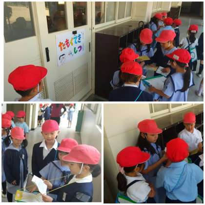 2年生が1年生を連れて、職員室や保健室などの教室を案内してくれました。
