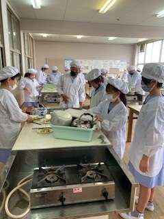 班で役割を分担して協力し、野菜を切ったり茹でたりしました。