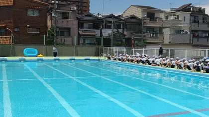 実際に、水着の上から体操服を着て水の中に入りました。