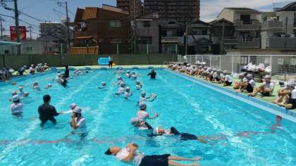 水の事故に巻き込まれた時、自分の命を守るためにどうすればよいか、学習しました。