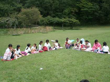 お昼は、とても広い野原でお弁当を食べ、元気いっぱい遊びました。