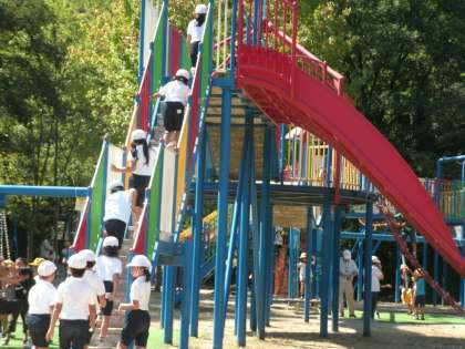暑い中でしたが、たくさんの大型遊具で、友だちと仲良く元気いっぱい遊ぶ姿が見られました。
