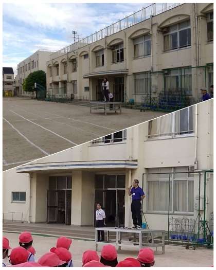 今週の朝会、天候も秋らしくなり、グラウンドでの朝会が