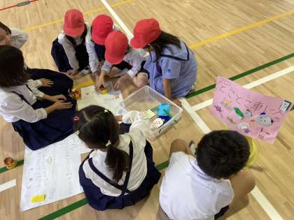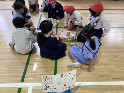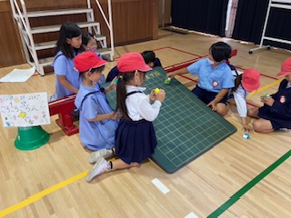 1年生を招待して、おもちゃ祭りを行いました。今日は1組同士で開催です。