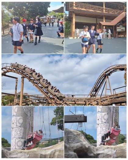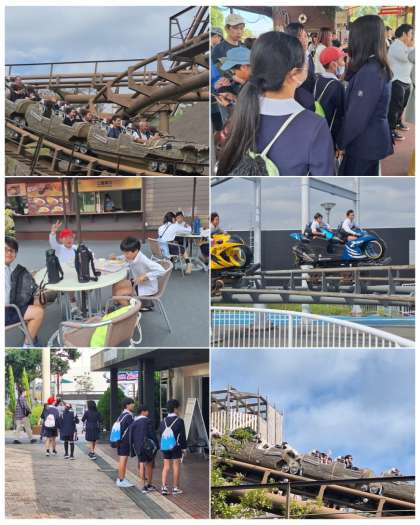 グループごとに園内を巡りいろいろなアトラクションを体験します。