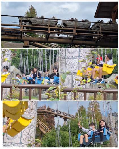 グループごとに園内を巡りいろいろなアトラクションを体験します。