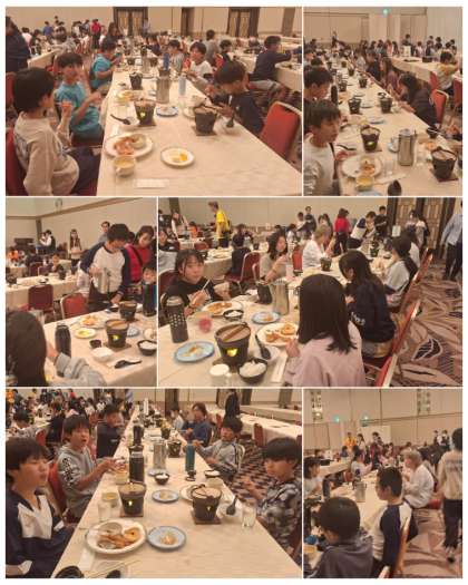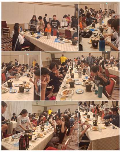 ホテルへ帰り、避難訓練を行い、夕食です。