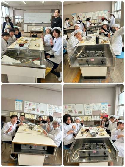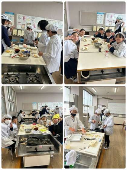 小学校生活最後の調理実習を行いました。サンドイッチを作りました。班で協力して作りました。三角に切ったり四角に切ったりして、いろいろな形のサンドイッチができました。「おいしい。」と言って食べていました。