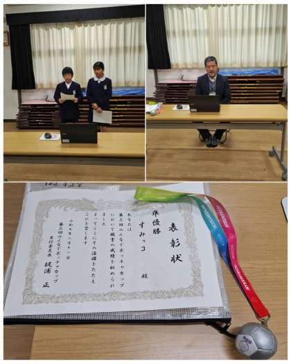 先日行われたボッチャの大会で準優勝をした児童の表彰を