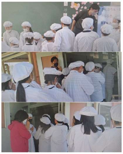 1年生の給食の準備に6年生のお兄ちゃんおねえちゃんが