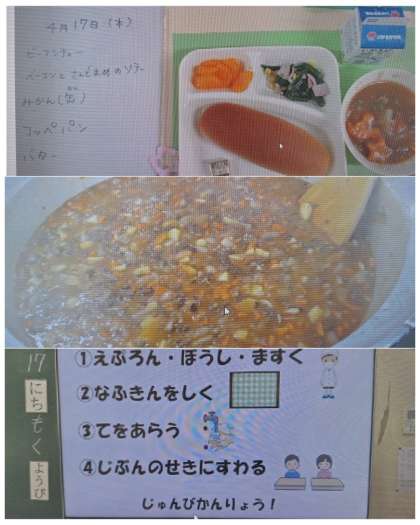 今日の給食の献立は、ビーフシチュー、ベーコンと
