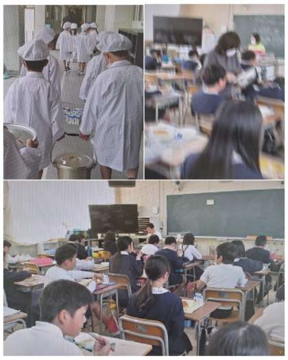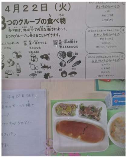 本日の給食は、鶏肉のガーリック焼き、スープ、ツナと
