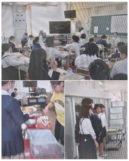 キャベツのソテー、おさつパン、といつもの牛乳です。
