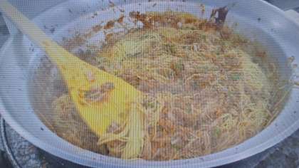 今日の献立は、ミートスパゲティ、焼きカボチャ、カレーフィ