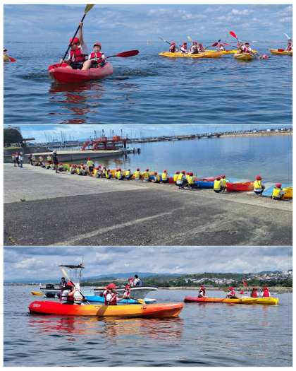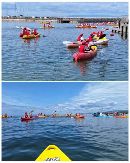 カヌーに2人で乗って息を合わせて前に進みましょう。